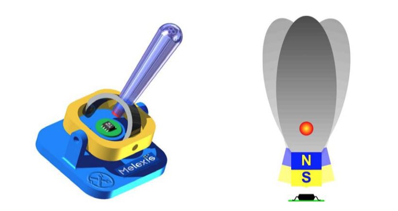 Joystick elektrik elektrik kesan Hall mengikut prinsip kesan Hall, isyarat anjakan yang dihantar oleh tangan diubah menjadi perubahan medan magnet kecerunan antara elemen Hall dan keluli magnet kekal, dan isyarat elektrik adalah output .. Berdasarkan perubahan medan magnet, sensor kesan ruang bertindak seperti potensiometer tetapi menghilangkan penurunan elemen kerana tidak memerlukan lengan pengelap fizikal. Magnet yang digabungkan secara dalaman ke hujung batang diletakkan berdekatan dengan cip kesan ruang, tetapi tidak pernah bersentuhan. Walaupun kayu bedik kesan dewan dapat menambahkan umur panjang, faktor lain perlu dipertimbangkan seperti peningkatan suhu atau voltan bekalan yang tersedia.